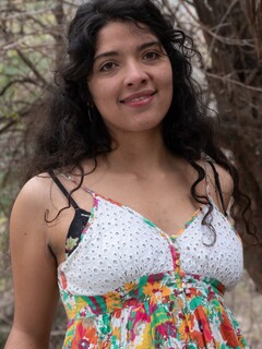 Maria F Pictures - Maria F is outdoors in her magnetic dress and exploring off her body